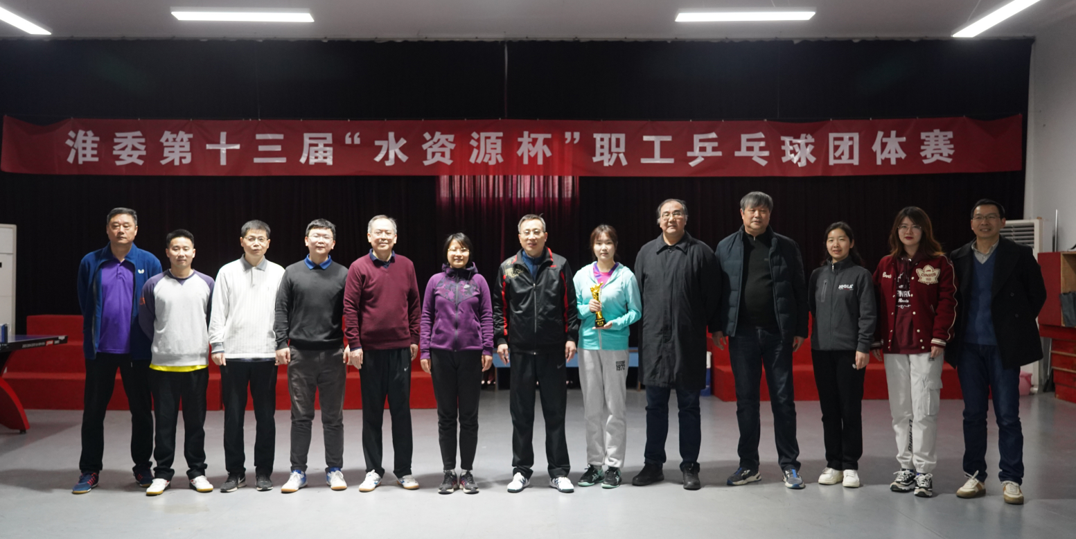 2月25—26日,淮委第十三届“水资源杯”职工乒乓球团体赛在蚌埠举办。淮委党组成员、沂沭泗局局长刘玉年和淮委党组成员、副主任许静到现场观赛并为获奖选手颁奖。公司党委副书记、工会主席周如龙率公司代表队参加比赛。